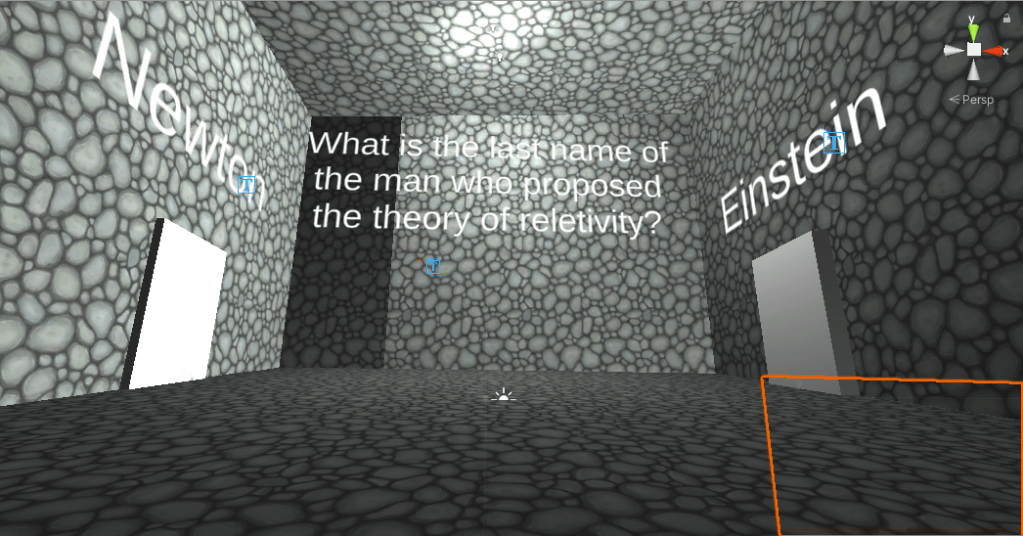 So the gameplay is all about answering trivia questions. You answer the question by walking through the white doorway. The entire wall and the block don’t have collisions enabled, I wish it was easier to just have the doorway without collisions. If you guess it wrong: